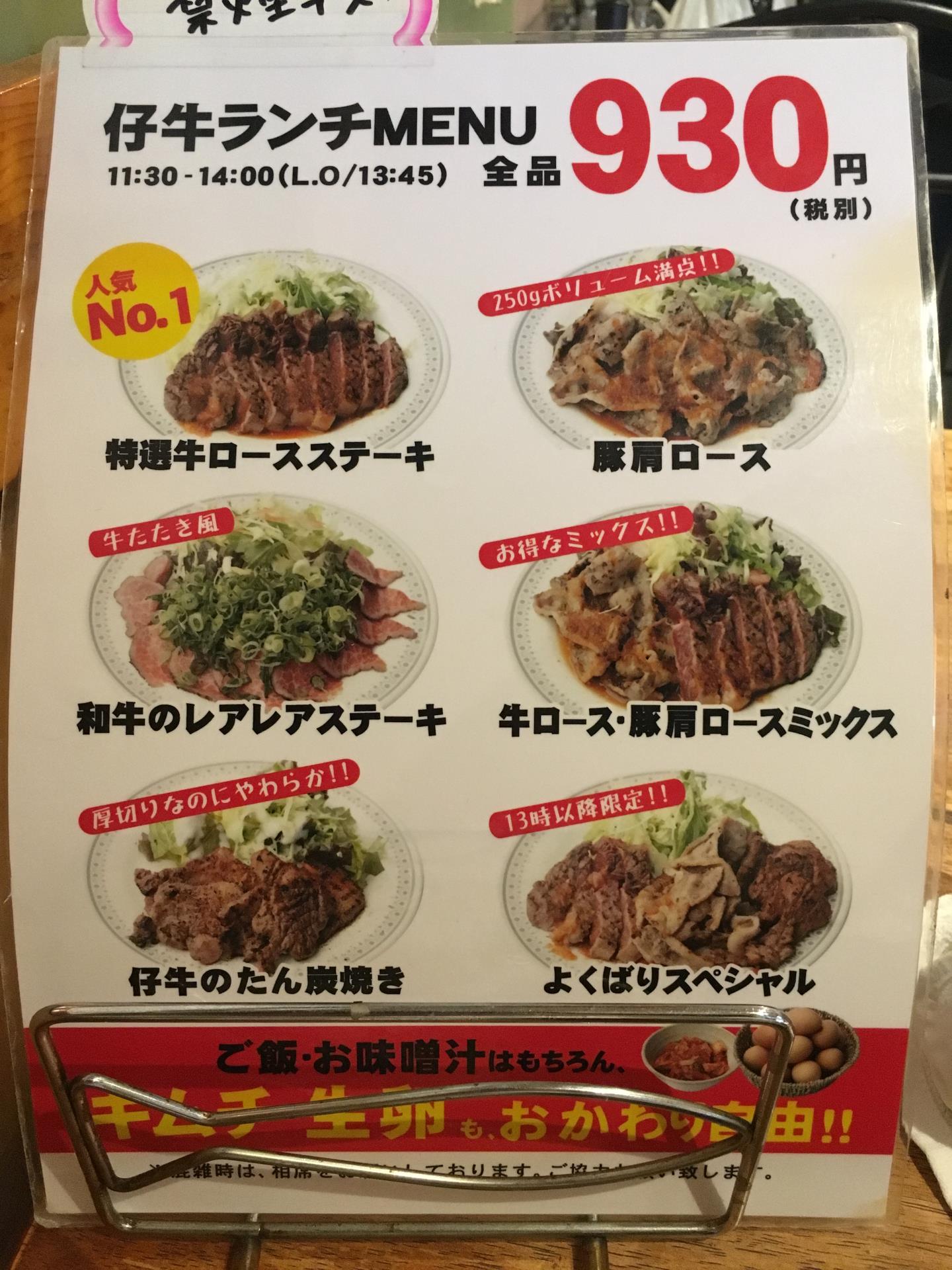 ちなみに仔牛ランチメニューは次の写真の通り。