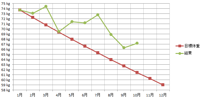× [PR]上記の広告は3ヶ月以上新規記事投稿のないブログに表示されています。新しい記事を書く事で広告が消えます。 9月末から10月末までの体重変化は、体重維持を目標にしていたため、大方維持できたかと思います! ![]() 9月末時点で66.3kgまで落ちましたが、その日の夜にガッツリ昼ごはんと飲み会があり、翌日に2kg以上体重が急増加したものの、10月末時点で67.2kgとなったため、先月末と比べて+1kg未満だったので良しとします(笑) ただ、先日に健康診断の結果が悪かったので、11月からまた減量に向けてダイエットに励もうかと思います。 そして、年始に立てた目標値との比較では、もう絶望的で意味を成さないものになってしまってるかな(笑) ![]() ちなみに10月中は、サウナとプロテインダイエットのみのダイエット法で過ごしましたが、やはりそれだけではなかなか減らないもんですねー。 PR