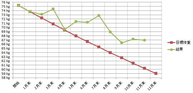10月末から11月末までの体重変化は、今月も体重維持です(笑)