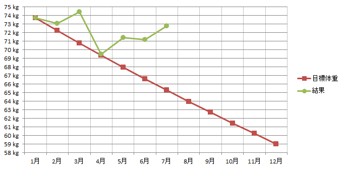 6月末からの7月末までの体重の推移は、右肩上がりにリバウンド中( ̄▽ ̄;)