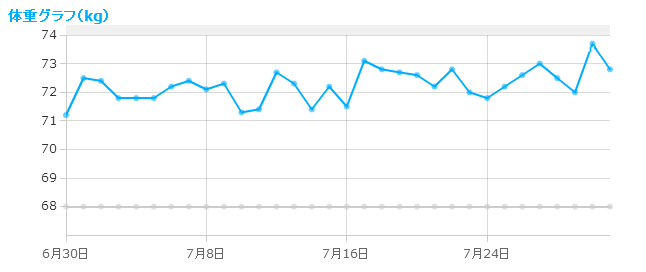 × [PR]上記の広告は3ヶ月以上新規記事投稿のないブログに表示されています。新しい記事を書く事で広告が消えます。 6月末からの7月末までの体重の推移は、右肩上がりにリバウンド中( ̄▽ ̄;) ![]() 何かと飲み会が多くて、仕事の付き合い上、毎週居酒屋へ行くペースが原因かなと。。 PR