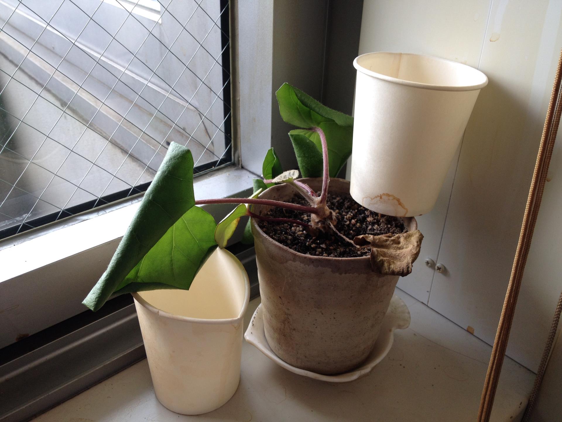 とある場所にて共同で観葉植物を育てているのだけれど、GWの大型5連休で誰も水をあげれない状態が明けた平日の木曜日に観葉植物を見ると、やはりというか、しおれてました( ̄▽ ̄;) さっそく水をあげ、翌日まで様子を見てみたところ・・・
