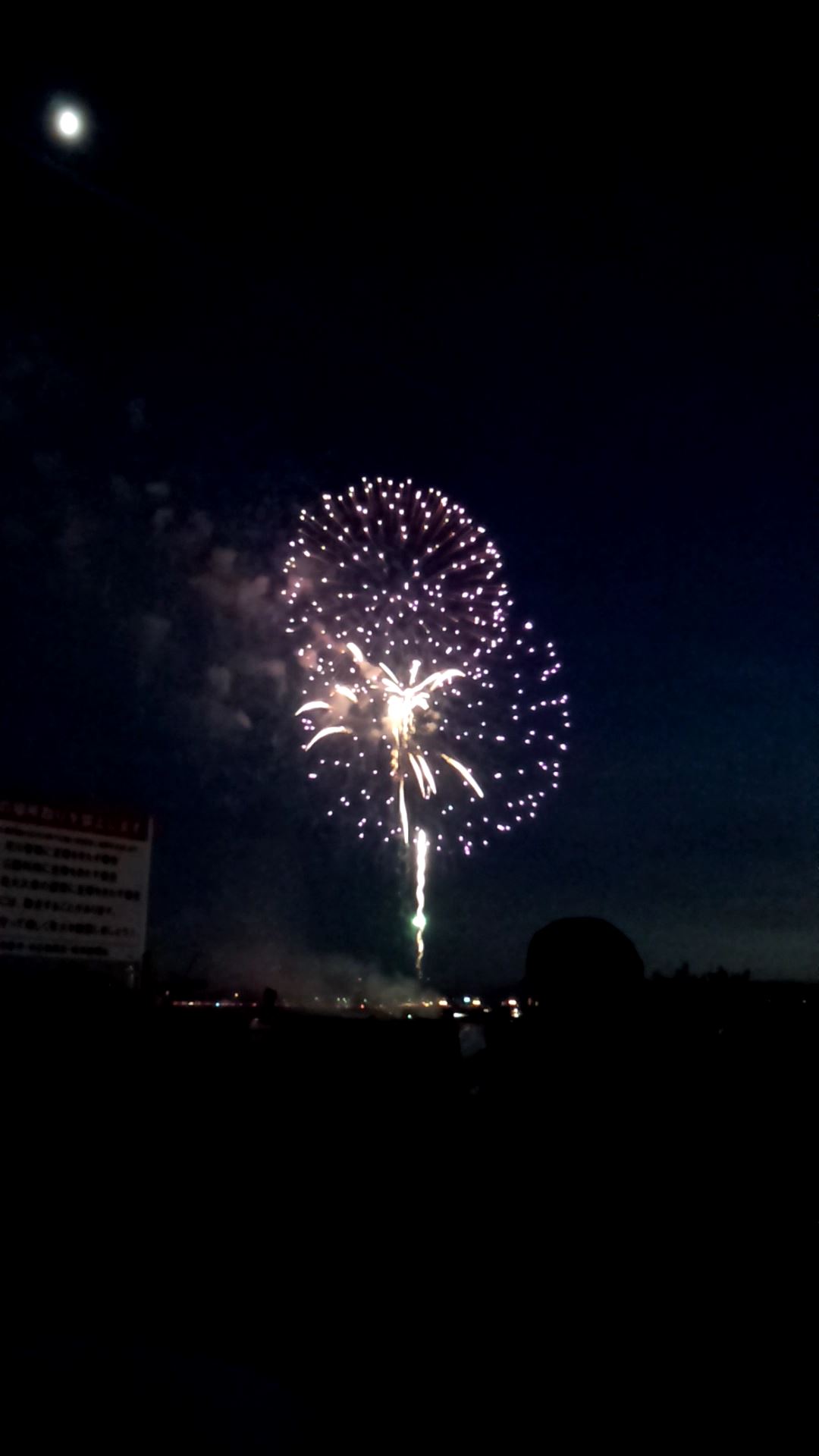 そして19時。月をバックに花火と重なって、日本の風物詩?を堪能。(  ̄▽ ̄)た~まや~!!