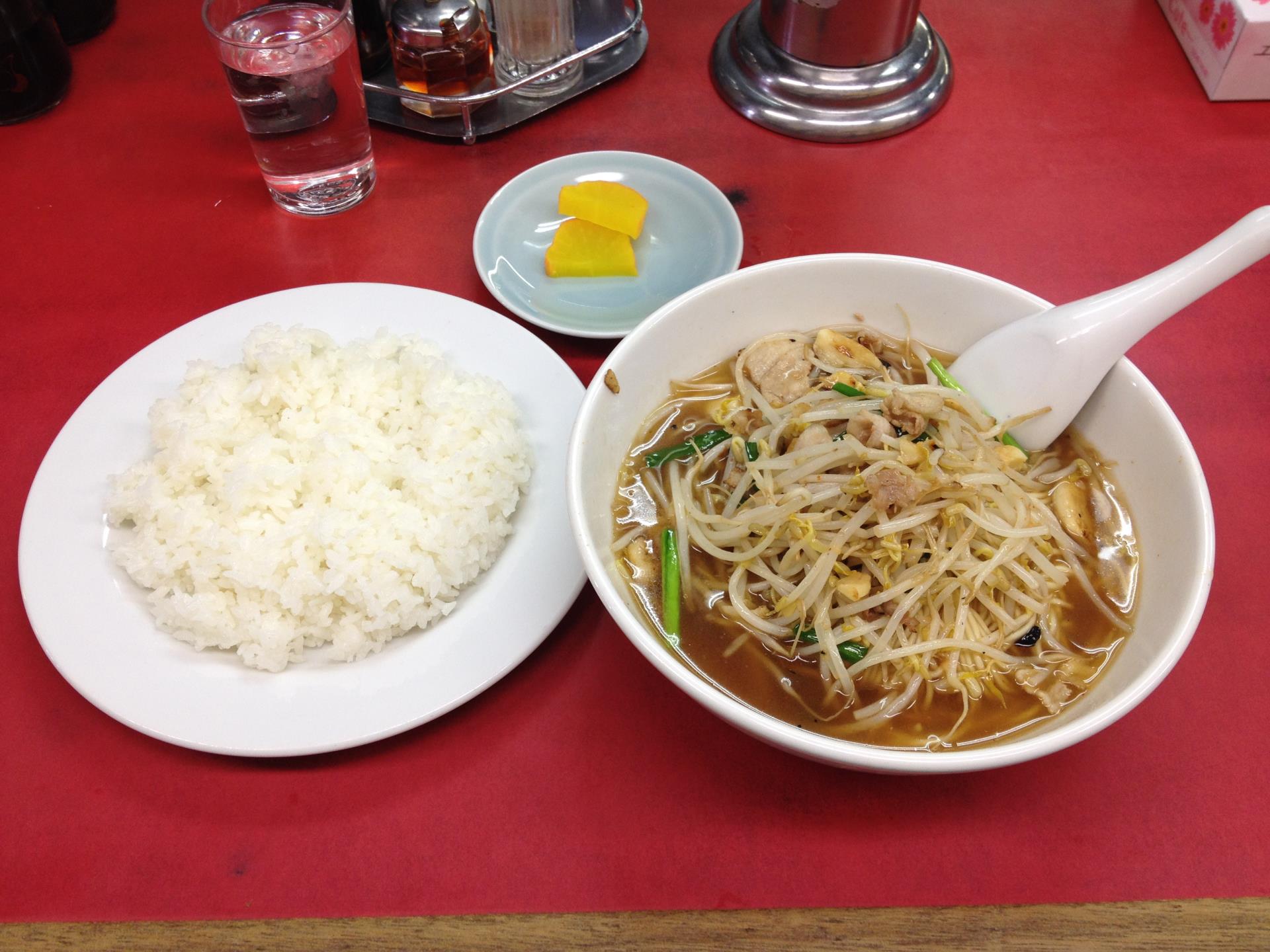 とりあえず、ベトコン定食(ベトコンラーメンと御飯と沢庵付き760円)を注文。 注文時にニンニクを入れるか聞かれたので、怖いもの満たさにニンニク有りで! 麺はやや固細麺で、ニンニクごろごろ豚肉もやし炒めを載せた感じで味は濃厚。 で、肝心の味は・・・(  ̄▽ ̄)b ウマイ!! 濃い目の中華系の味でニンニクが病みつきになりそう。しかも御飯とこれほど合うラーメンは初めて!(笑) ただ・・・食べた後のニンニク臭が半端ないので相当な覚悟が必要ですwww ・・・え?ダイエット?・・・ちょいと延期して明日から頑張る!!w